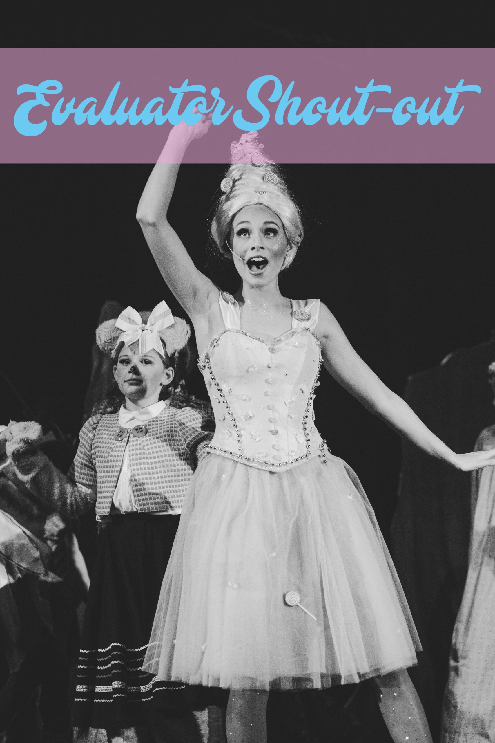 Two evaluators, either actors and theatre educators or those with a strong theatre background, evaluated Shrek the Musical in several categories, including movement and dance, vocal and acting technique for ensemble, execution of the technical aspects of the production and individual performances.